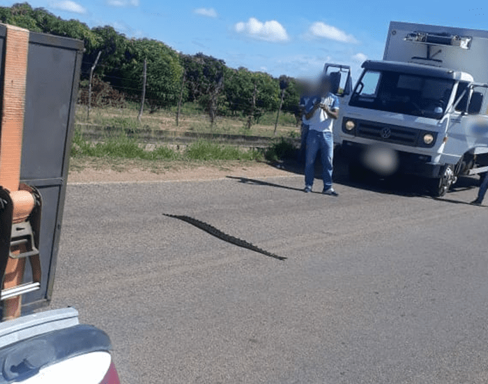 Motoristas flagraram uma cobra de pouco mais de um metro de comprimento atravessando a pista em um trecho da BA-210, zona rural de Juazeiro. Segundo informações, o fato aconteceu próximo ao NH1, na manhã de hoje (22). A cena chamou a atenção e os motoristas pararam dos dois lados da via, para registarem o animal cruzando a rodovia. Imagens encaminhadas a este Blog, por meio do WhatsApp, mostram a cobra entrando no mato à beira da estrada.