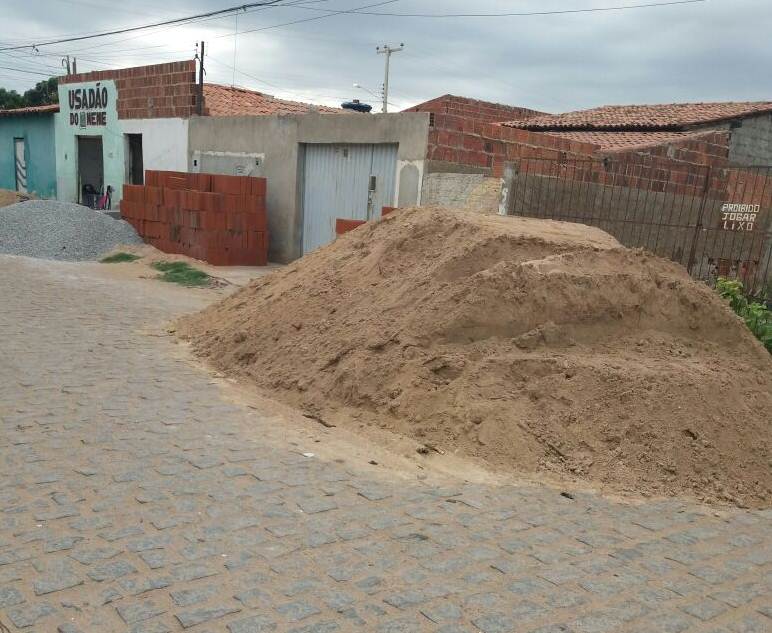 No Bairro João de Deus, zona oeste de Petrolina, os comunitários da Rua 13 estão aborrecidos por conta de materiais de construção que foram colocados sobre uma calçada e também no meio da rua, atrapalhando a passagem de pedestres e até de veículos. “Peço que a secretaria responsável venha fazer um procedimento, pois esses materiais de construção estão totalmente irregulares”, afirma um morador, através do WhatsApp do Blog. Haja bronca. (foto/divulgação)