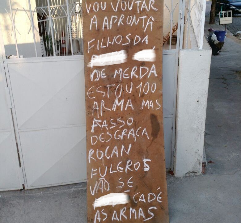 No recado, um suposto ladrão faz xingamentos à polícia e ameaças à população. O autor também diz que, apesar de estar sem armas, vai voltar e fazer “desgraça”. O fato deixou muita gente assustada.