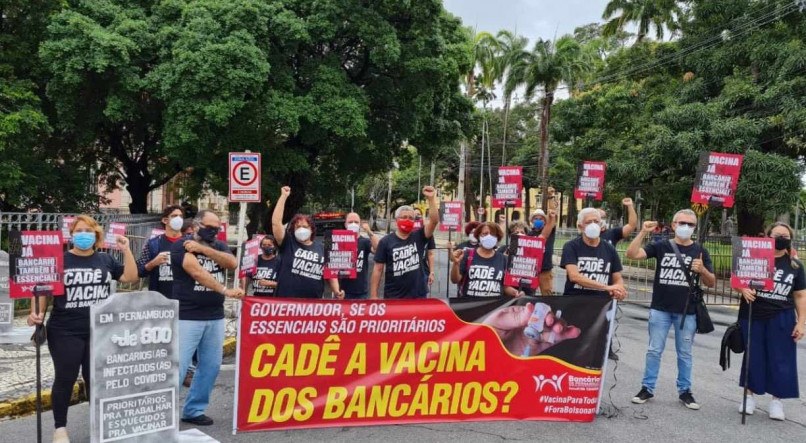À tarde, às 16h, a categoria fará uma passeata para cobrar imunização, saindo da agência da Caixa Econômica Federal do bairro da Boa Vista, área central do Recife. Em Pernambuco, a categoria é composta por cerca de 11 mil bancários, com concentração de mais de 6 mil bancários no Recife. Cerca de 60% dos bancários do Estado ainda não foram contemplados pela vacinação por faixa etária, pois têm menos de 40 anos, segundo a entidade sindical.