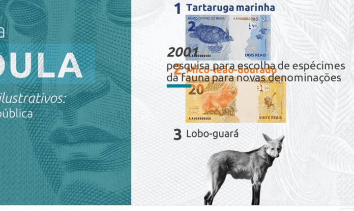 O lobo-guará foi escolhido em pesquisa realizada pelo BC em 2001 para eleger quais espécies da fauna brasileira deveriam ser estampadas nas cédulas do país. No site do BC, há mais informações sobre a nova cédula.