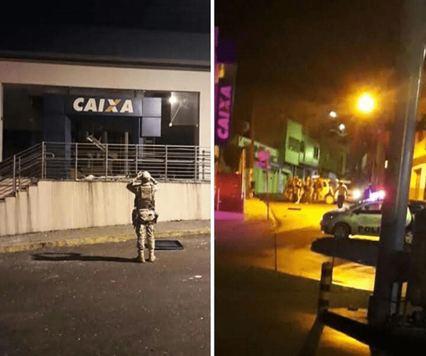 A ação foi registrada por câmeras de monitoramento da área. Os assaltantes fecharam a rua onde fica a agência, em seguida explodiram o local na tentativa de levar o dinheiro das máquinas de autoatendimento. Depois, aparentemente em dois carros, tomaram destino ignorado.