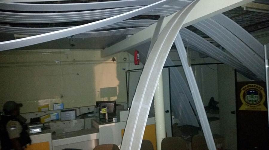 A agência ficou parcialmente destruída, comprometendo a estrutura interna e o teto do estabelecimento. Não houve confronto com a polícia.