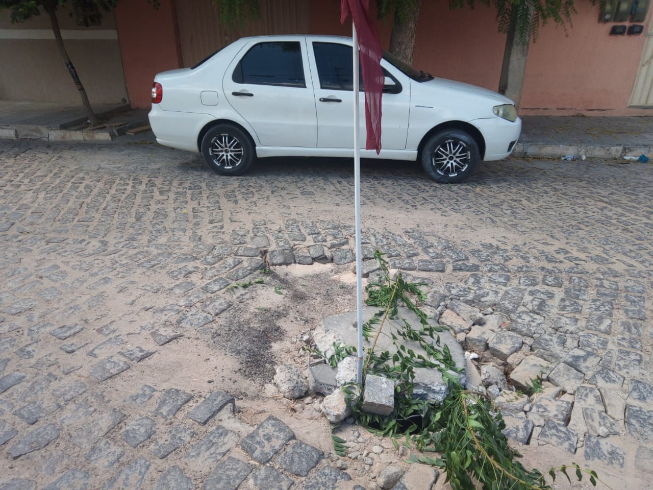 Segundo um morador, ele mesmo colocou alguns galhos para sinalizar o local e evitar que alguém se machuque.