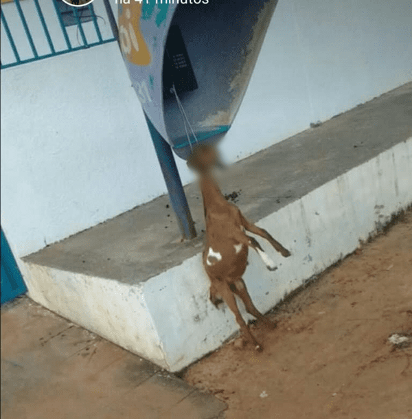 Um bode foi encontrado na manhã de hoje (3) enforcado pelo fio de um orelhão público. Segundo informações repassadas ao Blog, ninguém na comunidade tem a menor ideia de quem poderia ter feito tamanha maldade ao pobre animal. Que absurdo.
