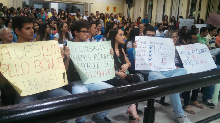 Centenas de estudantes lotaram o plenário da Casa Plínio Amorim, na noite de ontem (7), para debater a implantação de um bônus da Universidade Federal do Vale do São Francisco (Univasf) a estudantes da região que se submetem ao Exame Nacional do Ensino Médio (Enem).