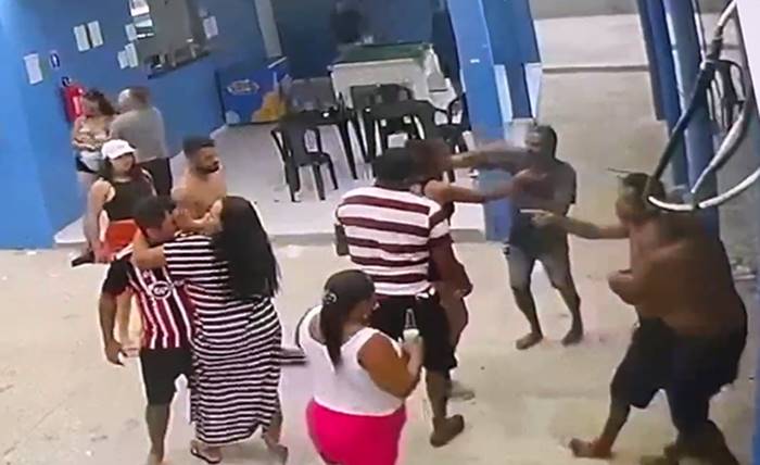 O tumulto começou, segundo testemunhas, após o presidente da associação local e sua esposa agredirem uma mulher em um quiosque. Familiares da agredida se revoltaram e foram para cima do líder comunitário.