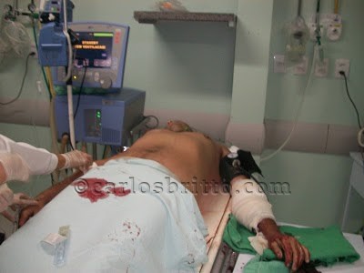 Os guardas foram acionados e ainda conseguiram deter Ednei, que tentava evadir-se do local. Segundo informações, ele e a vítima se envolveram em uma briga. Cleidson foi socorrido por populares e levado ao Hospital Pró-Matre, onde se encontra em estado grave com várias perfurações pelo corpo.