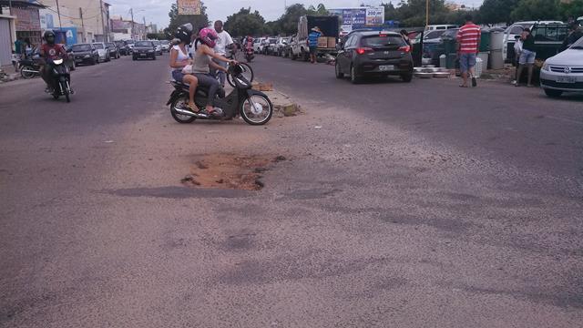 Buraco próximo à feira livre da Areia Branca tira paciência de motoristas