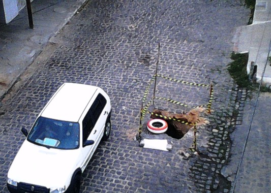 Um buraco que se abriu há alguns dias na Rua Francisco Duarte, no bairro Cajueiro, em Juazeiro, vem causando desconforto a pedestres e, sobretudo, a motoristas.