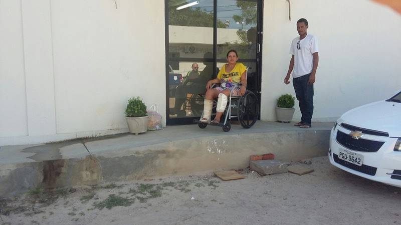 A acessibilidade continua sendo um grande obstáculo para quem não pode se deslocar, a exemplo da cidadã na foto acima. Cadeirante, ela se viu em dificuldades para entrar no órgão devido à falta de degraus.