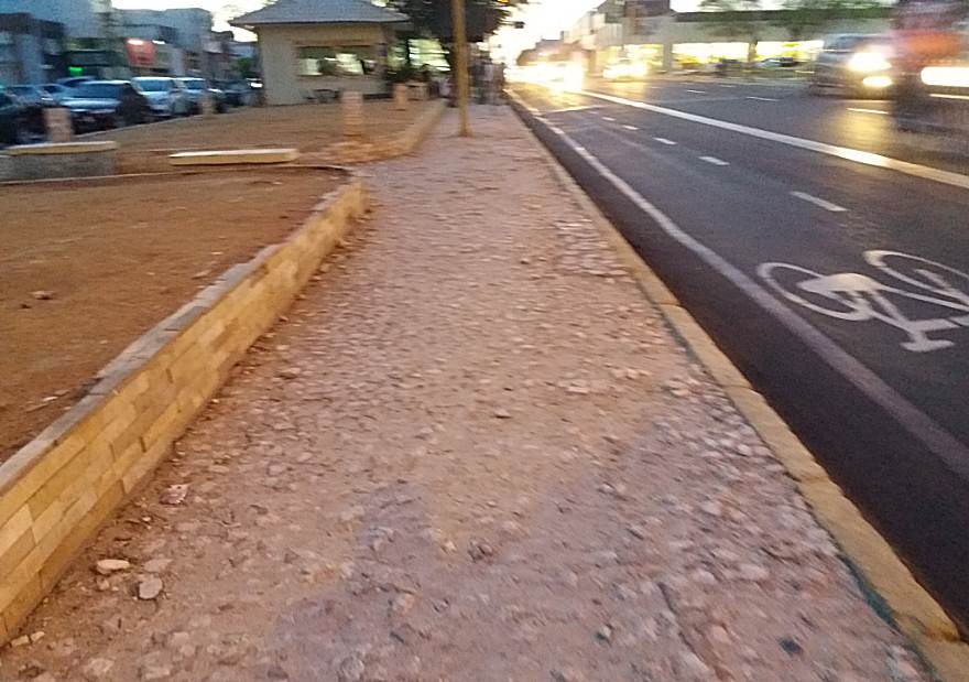 Caminhar nesse local, entre as duas vias, no Centro de Petrolina, é uma tarefa árdua. Por isso, há anos a população luta pelo reparo da calçada, cheia de buracos e pedras soltas. Pior para quem tem algum problema de mobilidade.