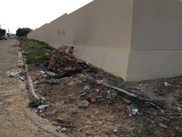 Prezadas. Os entulhos são da obra do muro da Escola Pacífico da Luz. Não foram recolhidos e a gestão da escola não observou. Cabe a prefeitura notificar.