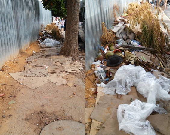 Segundo o leitor Jotta Silva, estão sendo depositados no local, sacos, pedaços de madeira, restos de podas, entre outros materiais, dificultando a passagem dos pedestres.