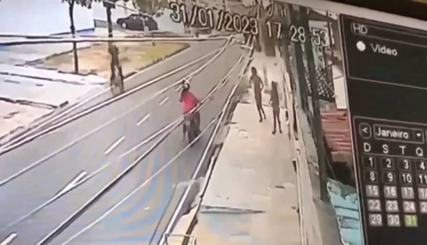 Uma câmera de segurança flagrou o momento em que duas pessoas em uma motocicleta assaltaram uma mulher, que caminhava pela calçada, no bairro Areia Branca, Zona Leste de Petrolina, no final da tarde de ontem (31). De acordo com populares, ela ainda tentou segurar o aparelho telefônico, mas não adiantou.