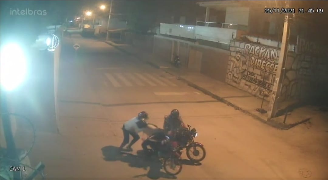 Câmeras de segurança flagraram um assalto na noite dessa quinta-feira (25), no bairro Dom Avelar, Zona Norte de Petrolina. As imagens mostram dois homens em uma moto se aproximando de um motociclista, que estava parado. Um deles desce e derruba a vítima no chão, levando sua moto e alguns pertences.
