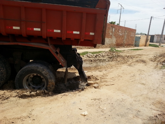 Não bastasse a situação precária da Rua A, um fato ocorrido na manhã de ontem (29) agravou ainda mais o problema: um caminhou atolou num lamaçal, estourando a rede de esgoto da área.