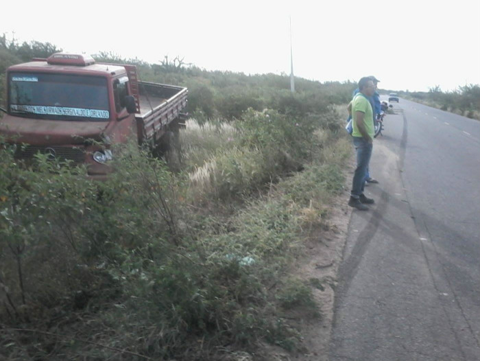 caminhão perimetralA Rodovia Perimetral/Avenida Transnordestina em Petrolina continua deixando suas marcas. Na manhã desta quarta-feira (13) um caminhão Mercedes, de porte médio, atropelou um jumento na rodovia. O motorista (não identificado), acabou perdendo o controle do veículo e acabou fora da pista.