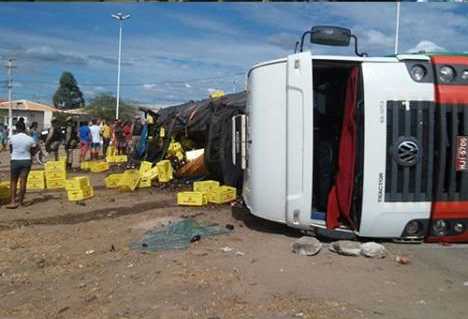 Um caminhão carregado de cerveja tombou em Juazeiro (BA), no contorno do Mercado do Produtor, na BR-407, sentido Centro da cidade. O fato aconteceu no último domingo (5), na curva para o contorno, onde acidentes desse tipo vêm se tornando frequentes.