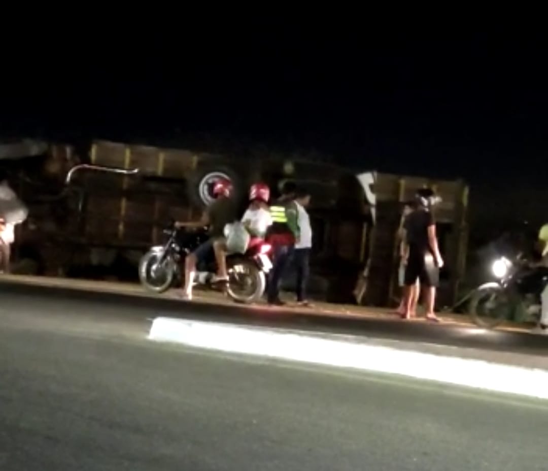 Um caminhão carregado de mangas tombou na noite dessa terça-feira (19), em um contorno do bairro Pedra Linda, no cruzamento da estrada da Perimetral com a Marechal Hermes da Fonseca (Estrada da Banana).