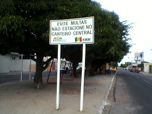 gente, não é a placa que proíbe estacionar ao lado do canteiro central, muito menos sobre o canteiro, como na Av Paraíba, na Areia Branca, é a lei, ela é clara, não é porque tem o meio-fio pintado de branco que tá liberado: PELO CBT É INFRAÇÃO ESTACIONAR NO CANTEIRO CENTRAL, INDEPENDENTEMENTE DE PLACA OU AVISO.