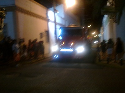 Isso mesmo. Os foliões do Carranca Dourada, que deveriam ser priorizados no seu dia, tiveram que aguardar o caminhão sair da rua, para poderem entrar. Tudo porque as ruas deveriam ter sido bloqueadas pela EPTTC, e não foram. Durante todo o trajeto, outros veículos também cruzaram o caminho do bloco, mas alguns tiveram a boa vontade e a coerência de dar vez à folia.