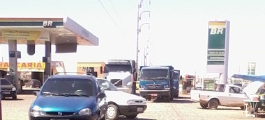 Nas fotos enviadas por ele, um posto de combustíveis na Rua 08 do bairro serve de estacionamento de caminhões, o que impede o acesso dos demais veículos pela rua.