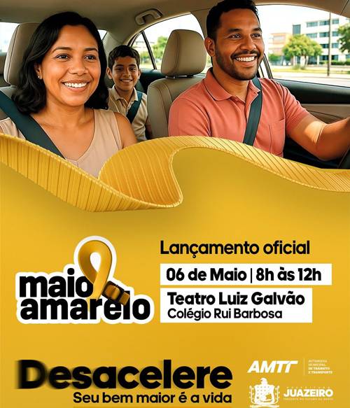 A Autarquia Municipal de Trânsito, Transporte e Mobilidade Urbana (AMTT) de Juazeiro (BA) lançará nesta terça-feira (6) a Campanha ‘Maio Amarelo’, das 8h às 12h, no Teatro Luiz Galvão, localizado no Colégio Rui Barbosa. O movimento, criado em 2011 pela Organização das Nações Unidas (ONU), tem como principal objetivo a conscientização para a redução de acidentes de trânsito.