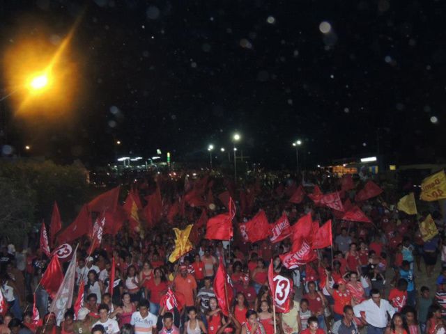 Militantes de vários candidatos a vereador seguiam os candidatos Dedi e seu vice, Roberto Bolivar (PT). Na concentração final FBC falou da sua alegria em participar da campanha e confirmou seu apoio a Dedi.