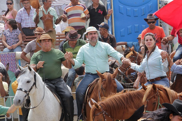 Júlio Lóssio (PMDB), que concorre à reeleição, foi acompanhado da primeira-dama, Andréa. Rezou, cumprimentou a vaqueirama e também rendeu homenagem ao organizador da missa, o radialista Carlos Augusto (que também é o idealizador da Jecana). Fernando Filho (PSB), ao lado do seu vice, Gennedy Patriota (PTB), também marcou presença, sendo muito saudado durante o evento. O petista Odacy Amorim foi igualmente acompanhado do seu companheiro de chapa, Vilmar Cappellaro (PPS), cumprindo o ritual até o fim. Esta cena, a partir de agora, será comum em outros grandes eventos na cidade. (fotos/divulgação)