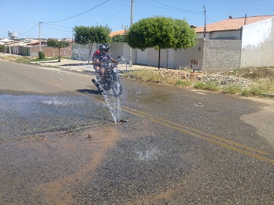 Um cano estourado jorrou água potável durante praticamente todo o dia de ontem (29), na Rua R (Quadra Q) do distrito industrial, próximo ao bairro Cohab V, na zona oeste de Petrolina.