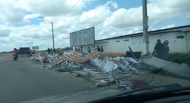 A carga de uma carreta acabou caindo praticamente por completo no contorno do Mercado do Produtor, em Juazeiro (BA), na tarde dessa quinta-feira (30).
