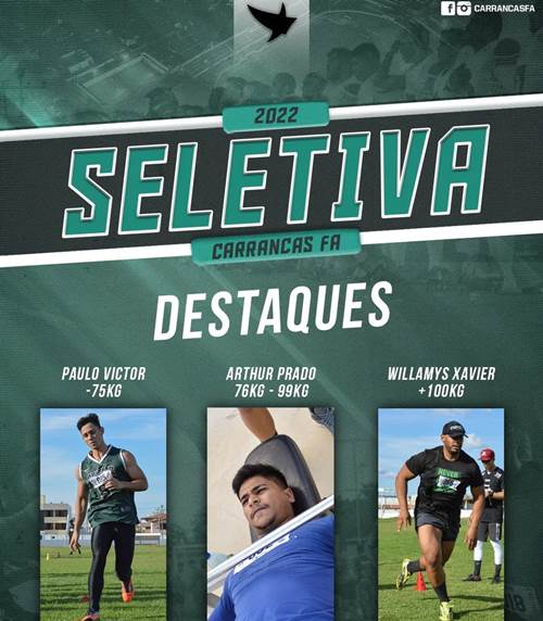 O último sábado (26/02) foi um dia intenso de avaliações dos 80 candidatos inscritos para ingressar no time do Carrancas Futebol Americano divulgou nesta quarta-feira (2) o resultado da Seletiva 2022. A lista com os novos atletas, que estarão no Time de Calouros da temporada, está disponível nas redes sociais do clube (Instagram: @carrancasfa).