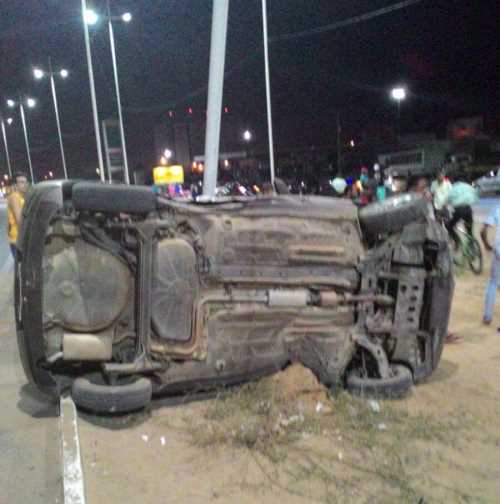 Um carro capotou e derrubou um poste de ferro, em plena Avenida Honorato Viana – de acesso a Cohab Massangano, zona oeste de Petrolina – na madrugada deste domingo (25).