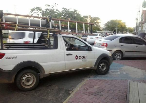 Mais um flagrante de desrespeito é registrado em Petrolina. O veículo acima, que presta serviço à Celpe, está estacionado indevidamente em frente a uma rampa para cadeirantes na Avenida Souza Filho, no Centro da cidade.