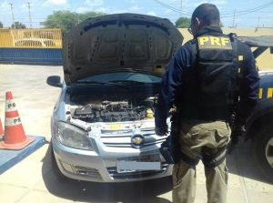 Após uma verificação nos caracteres identificadores do carro, a equipe da PRF constatou que o veículo havia sido roubado em Salvador, no mês de setembro, e as placas utilizadas no carro eram falsas. O condutor foi encaminhado à Delegacia de Polícia Civil de Petrolina. (foto/PRF divulgação)