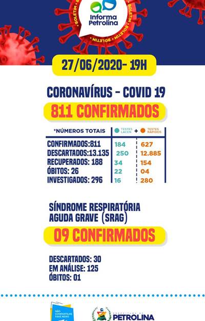 Com mais esses infectados, Petrolina chegou ao total de 811 casos – sendo 627 confirmados por testes rápidos da prefeitura e 184 diagnosticados através de exames laboratoriais. As curas clínicas somam 188. Óbitos totalizam 26.