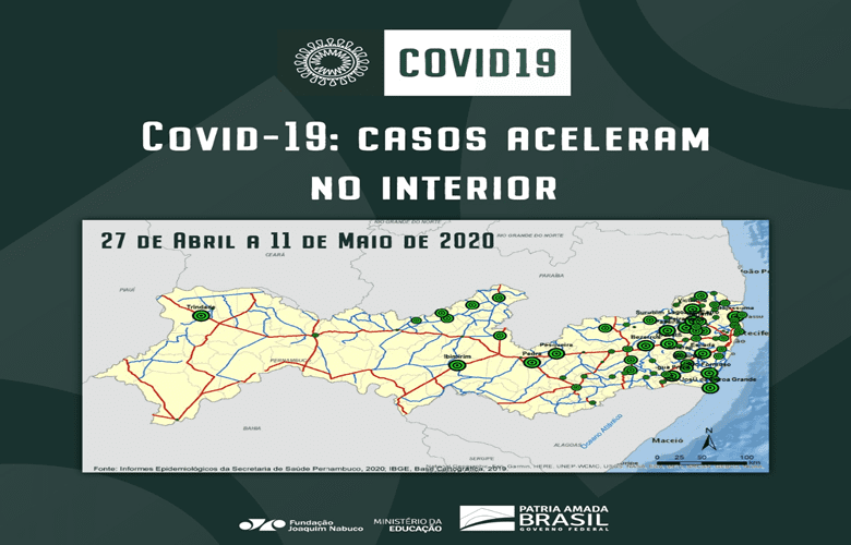 Outros municípios que demonstraram um avanço da doença foram Pesqueira (500%), Bezerros (400%) e Escada (400%). ”O crescimento exponencial da pandemia se dá consideravelmente no entorno da RMR, no Agreste e em poucas cidades do Sertão, especialmente, Trindade e Ibimirim. Comparando o mapa da variação percentual com o mapa de casos confirmados de 11 de maio, percebe-se a uma notável diferença entre eles: o padrão de expansão da pandemia não segue necessariamente uma relação direta de quantidade de casos”, destaca o coordenador.