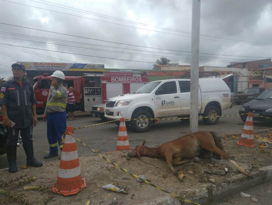 Uma descarga elétrica matou um cavalo, na sexta-feira (31/03), próximo ao Mercado do Produtor de Juazeiro (BA). Segundo o 9º Grupamento de Bombeiros Militares (GBM), o animal encostou num poste de iluminação pública e sofreu a descarga elétrica.