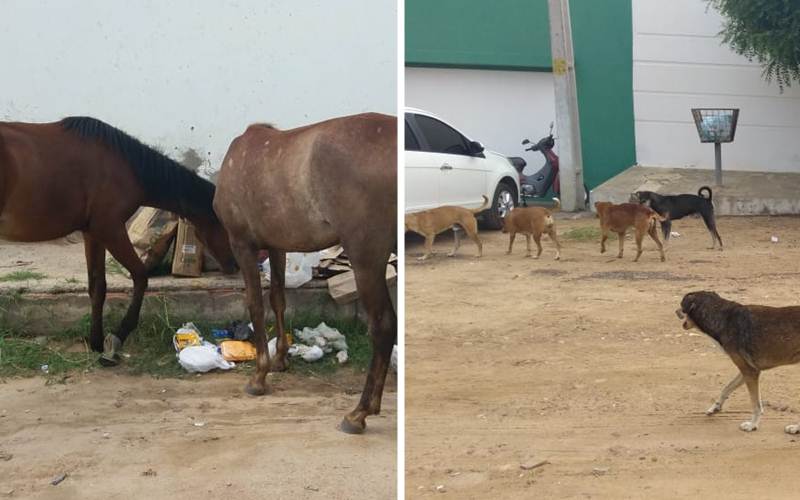 Moradores do Caminho do Sol, zona leste de Petrolina, estão reclamando de animais soltos nas ruas do bairro. O flagrante acima foi feito no último sábado (9). Cavalos e cachorros fazem parte do problema.