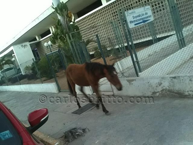 O mais agravante é que o cavalo estava nada menos que no coração da cidade, em pleno horário do ‘rush’. Um perigo.