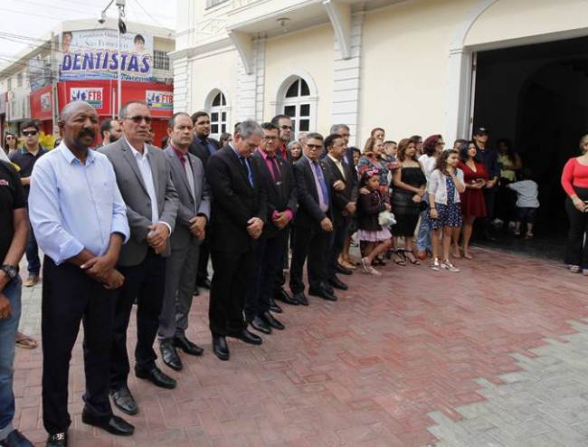 A cerimônia de hasteamento das bandeiras, realizada no início da manhã deste sábado (15) em frente à prefeitura, marcou as comemorações dos 139 anos de Juazeiro (BA). A programação oficial já começou há alguns dias, mas hoje o ato teve a presença do prefeito Paulo Bomfim, deputados, autoridades militares, secretários municipais, vereadores, da banda do 3º Batalhão de Polícia Militar (BPM) e da sociedade em geral, que acompanhou a execução do Hino Nacional e do Hino de Juazeiro, seguidos pelos parabéns à cidade.