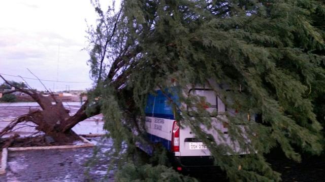 A força da chuva deixou um rastro de destruição na cidade. Árvores, postes e muros foram derrubados pelo granizo.
