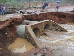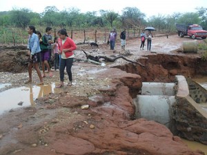 Para conseguir se deslocar e chegar ao Centro da cidade, os moradores precisam fazer um desvio de 12 km. A obra no valor de trinta e dois mil reais (32.000.00), feita pelo INCRA-Petrolina, não suportou a 1ª chuva e agora as famílias estão isoladas e preocupadas com a distância que tem que percorrer até buscar ajuda. (Informações/foto Mário Luiz)