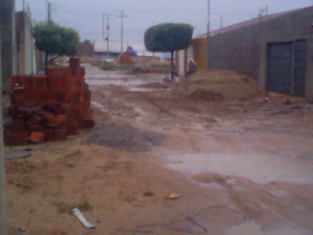Moradores da Rua 01 do Bairro Vila Débora se unem e compram carradas de areia com cascalho para tentar conter a água que está invadindo as suas casas e para tentar entrar com os seus carros nas suas garagens, o que infelizmente a medida não solucionou o problema, pois a areia ficou fofa.