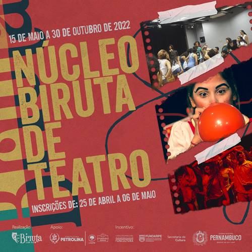 A Cia Biruta de Teatro está com inscrições abertas para a turma 2022 do Núcleo Biruta de Teatro (NBT) até a próxima sexta-feira (6). O projeto, que tem incentivo do Governo de Pernambuco, através do Fundo Pernambucano de Incentivo à Cultura, oferece aulas gratuitas de teatro para jovens na periferia de Petrolina. Para se inscrever, basta ter mais de 14 anos e ser residente da periferia da zona oeste de Petrolina. As inscrições são online, através do formulário eletrônico.
