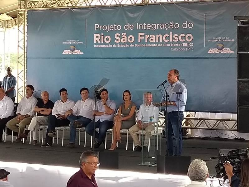 Durante o evento, que está servindo para Temer entregar Estação EBI-2 do eixo Norte do Projeto de Transposição do Rio São Francisco, Raul Henry mostrou-se evasivo no momento em que o senador discursava. Ele também ficou distante de FBC e do seu filho, o ministro de Minas e Energia Fernando Filho, na composição do cerimonial. Henry e FBC disputam a ferro e fogo a presidência do MDB de Pernambuco. Pelo visto, o clima continua pesado entre os dois. (Fotos: Jailson Queiroz/divulgação)