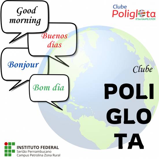 Prosseguem abertas até o dia 8 de maio as inscrições para o Clube Poliglota do IFSertãoPE/Petrolina Campus Zona Rural – projeto de extensão com objetivo de proporcionar a oportunidade de praticar conversação em inglês, espanhol e/ou francês, ampliando a habilidade de comunicação nesses idiomas. Estão disponíveis 30 vagas para participação nos encontros de conversação em inglês, 30 para participação nos encontros de espanhol e 30 para os encontros de francês, sendo 50% das vagas reservadas ao público interno do campus (estudantes e servidores), e 50% das vagas para o público externo.