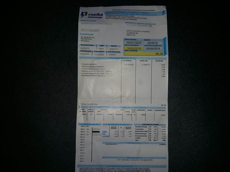 Conta de energia na Bahia. (Foto: Duda Oliveira/Blog do Carlos Britto)