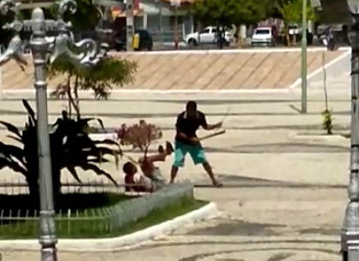 Em certo momento ouve-se uma voz masculina gritando para os dois pararem. Mas isso só acontece depois que um dos flanelinhas consegue se desvencilhar do seu agressor. Mas não acabou aí.